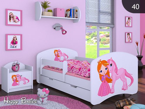 Kinderbett Jugendbett Juniorbett Bett 140 x 70 x 60 cm aus hochwertiger Möbelplatte mit Matratze und Bettkasten. Viele kinderfreundliche Motive zur Auswahl. Abgerundete Kanten, Farbe:Princess and Unicorn
