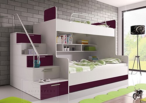 Etagenbett Violett Hochglanz Links Bett Jugendbett Doppelstockbett Stockbett Hochbett 90 x 200 Bettkasten Treppe